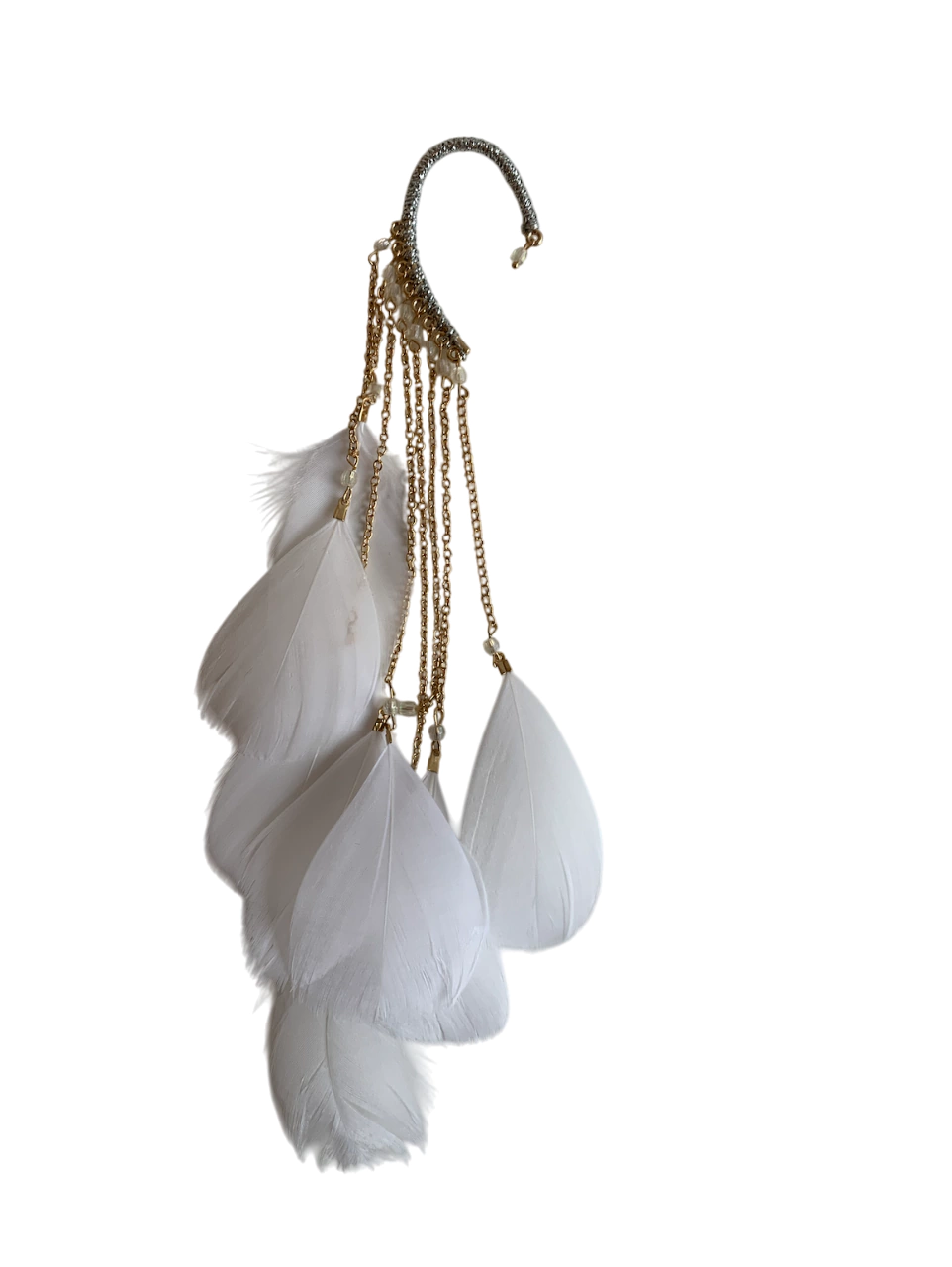 O Ear Cuff Penas Assimátricas é o acessório perfeito para dar um toque especial ao seu look. Com suas penas assimétricas, ele adiciona estilo a seu look de forma leve e sutil. Ideal tanto para o uso diário quanto para ocasiões especiais, como no reveillon, carnaval e festas em geral. Feito com aço em tom de dourado e revestido com linha dourada, o Ear Cuff Penas Assimétrico, possui um encaixe perfeito na orelha, garantindo conforto e segurança ao usá-lo. Por se tratar de penas naturais, a tonalidade pode variar de acessório para acessório, tornando cada peça única e exclusiva. Adquira já o seu Ear Cuff Penas Brancas eleve seu look.